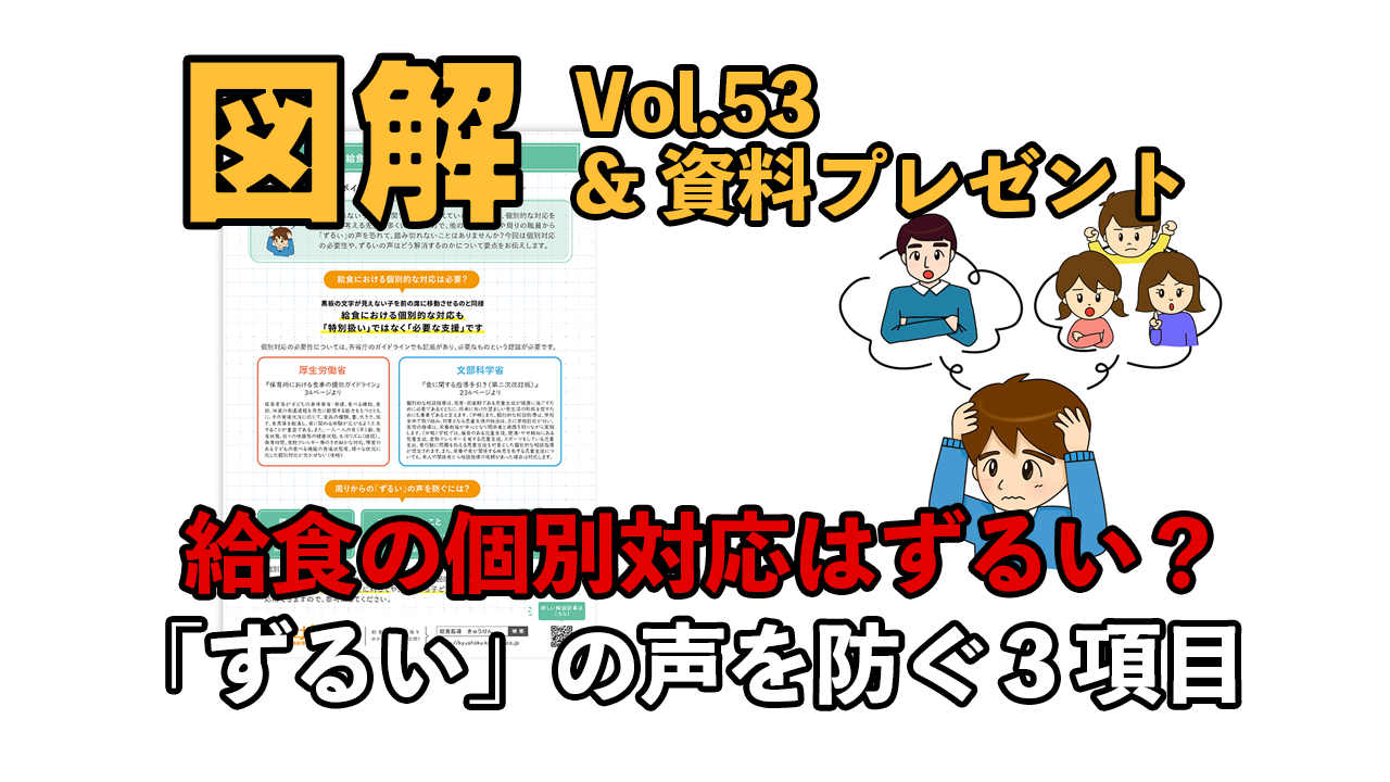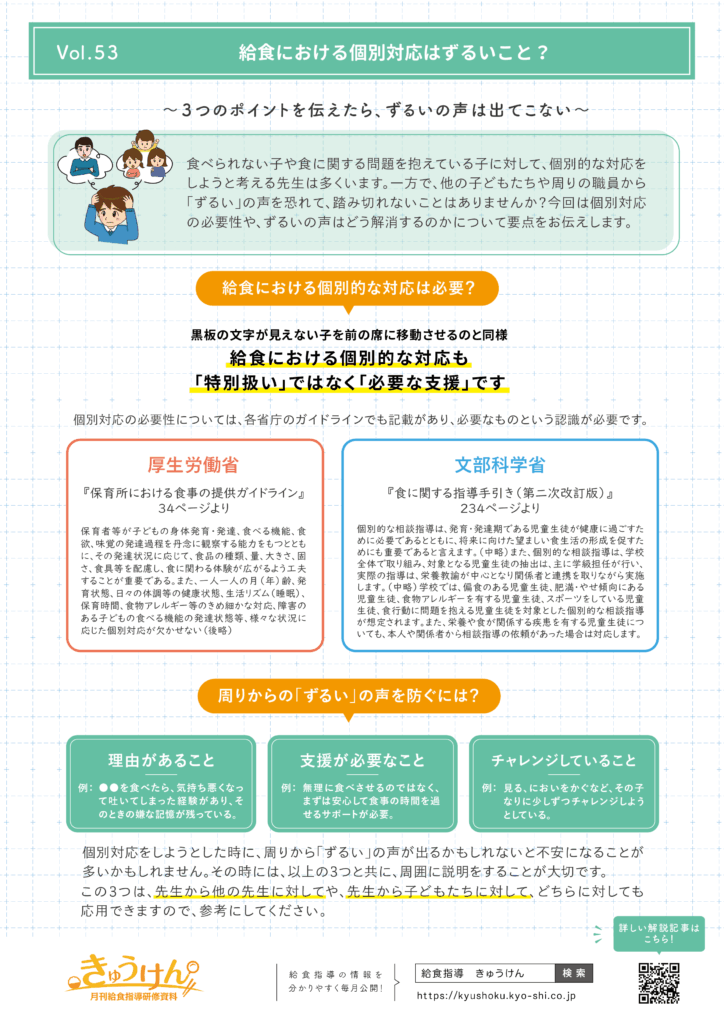 Vol.53『給食における個別対応は「ずるい」こと?』の印刷用PDFはこちら(右クリックで保存できます)